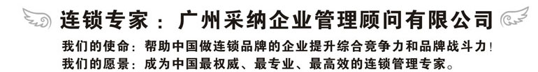 廣州采納企業(yè)管理顧問有限公司特別擅長服務(wù)連鎖企業(yè),致力為連鎖企業(yè)設(shè)計符合行業(yè)特色的企業(yè)和門店視覺形象系統(tǒng),量身定制客觀的評估系統(tǒng)、穩(wěn)定通暢的供應(yīng)鏈系統(tǒng)、專業(yè)的標(biāo)準化系統(tǒng)、高效的招商系統(tǒng)等發(fā)展連鎖必備的五大系統(tǒng),讓連鎖企業(yè)能在短期內(nèi)迅速規(guī)范和復(fù)制,讓企業(yè)更理性,更健康地長久發(fā)展。